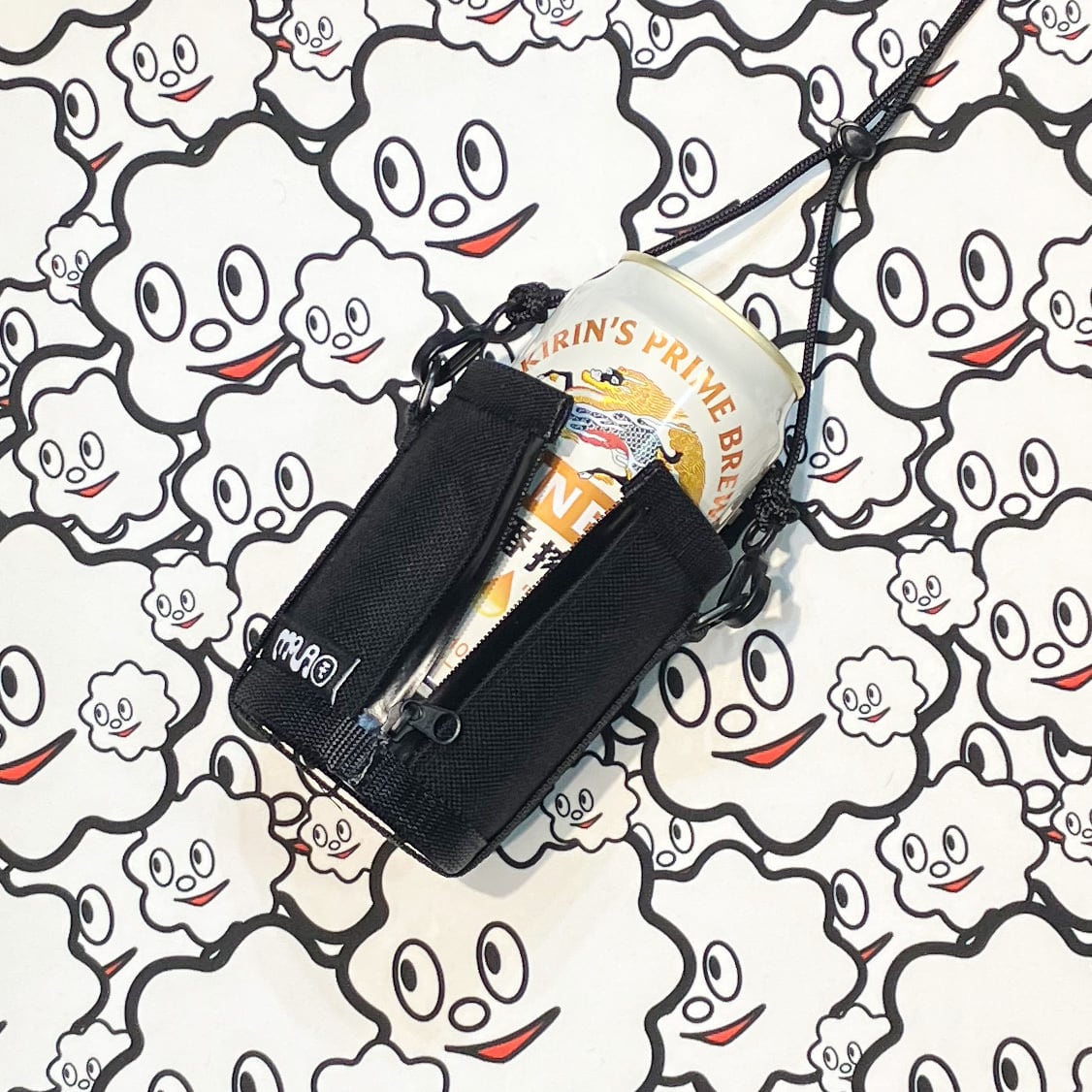 刺繍だるまモジャ!いい事あるぞよ! 黒だるまは泥酔してるよ! 350mlの缶ビールぶら下げてみんなで乾杯! 裏地がアストロフォイルのなので保温性があります! 背面はアクアガードファスナーで入れやすくなってます! 重量 約45g 素材 CORDURA1000 アストロフォイル ハンドメイドなので個体差あります。